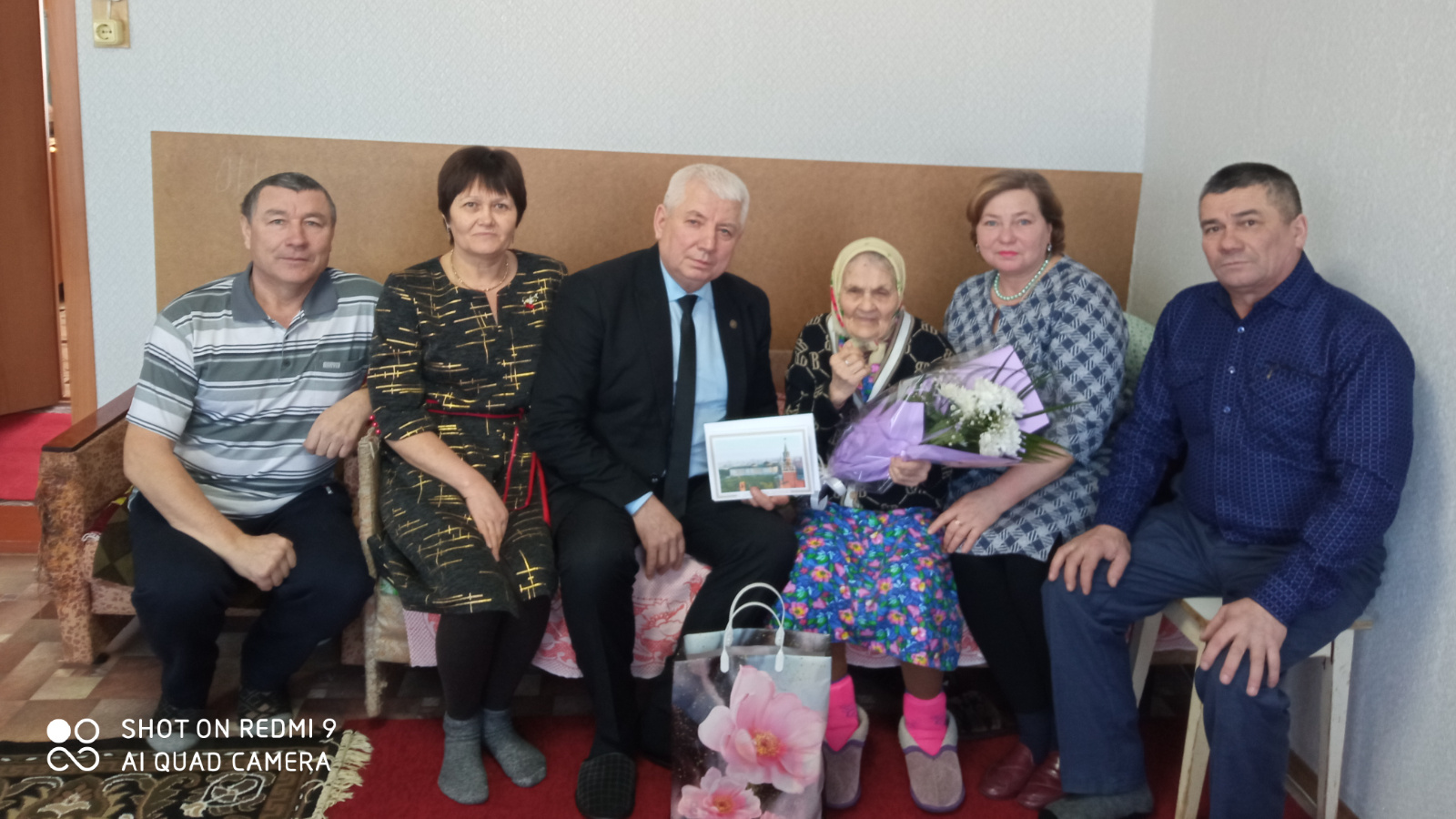 Поздравить уважаемого житела села прибыл заместитель главы Дрожжановского района Алексей Ярухин,вручил поздравительный адрес от Президента Российской Федерации и памятный подарок.